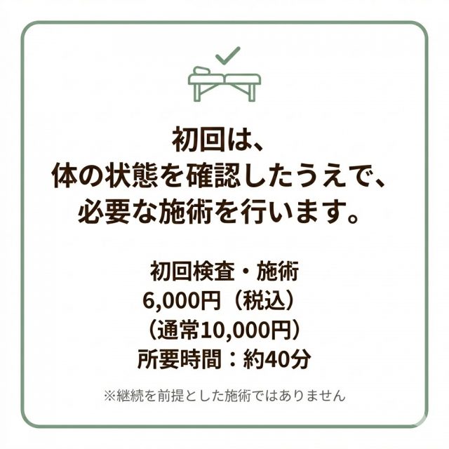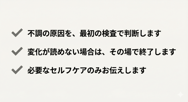 初回の検査・施術を通して、変化が読めるかどうか/施術を続けるかどうかを判断します。