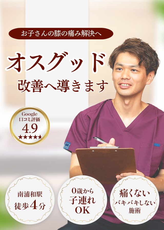 オスグッドの場合、反対の足や腰に問題があるケースが多いです。
